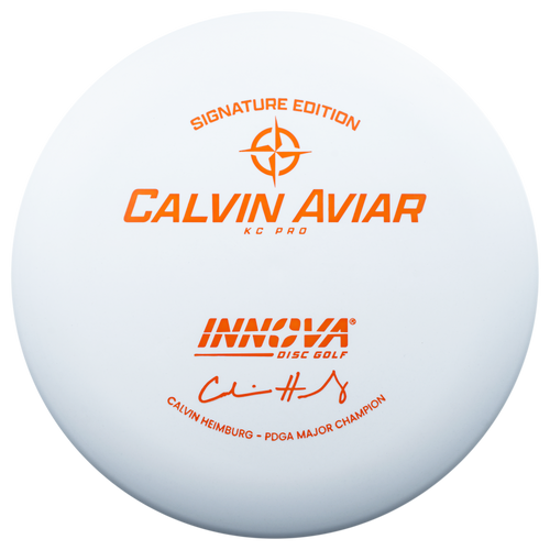 The Calvin Aviar is the same stiff, big bead Aviar that has been a favorite of pros for years and for good reason. Calvin Heimburg secured his first major title in 2025 at the European Disc Golf Festival with a clutch putt on the 18th hole and won the DGPT Championship using his new signature putter. "It's really cool to get something that I've bagged for so long with my name on it. If you want a putter that is a little more stable, or have slightly bigger hands and want a slightly deeper putter, this is putter for you." said Heimburg. This disc is molded exclusively in Super White KC Pro.