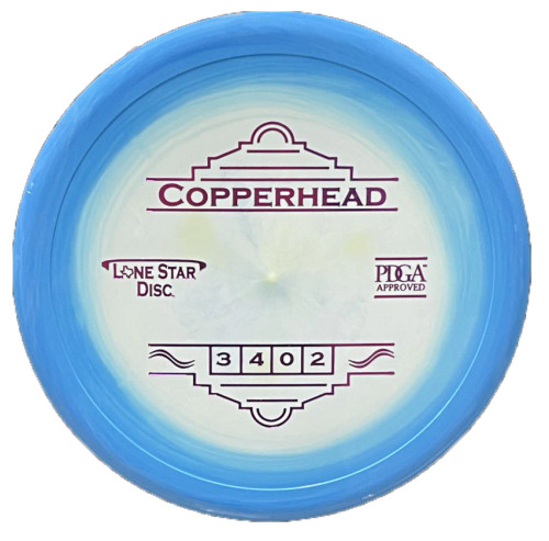 The Copperhead is a reliable overstable putter that features a thumb track and beaded bottom. It's a great putter for players who like to putt with hyzer and is an awesome forehand putter. It comes in handy for approach forehands and short hyzers as well. Bravo plastic is a durable premium material that has a grippy, slightly soft texture.