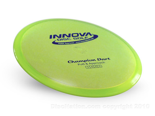 The Dart is a small diameter putter with a straight flight, and in Champion Plastic it's extra durable! The Dart is especially good for long range putts and go-for shots. It has a flight path similar to the Aviar Putt & Approach but has less low speed fade and a little more speed & glide, givng it a longer range. The nice thing about this disc, besides the improved grip, is that it holds the line for a long time. Champion is especially well-suited to short-range discs like the Dart when used for approaches. The disc will retain its initial stability performance for well into its lifespan. Features: Speed 3 Glide 4 High Speed Turn 0 Low Speed Turn 0