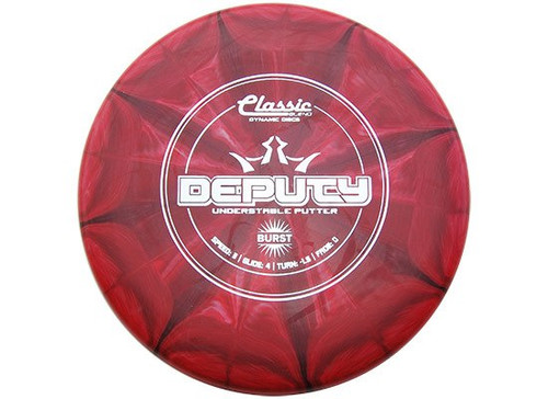 The Deputy is a more understable counterpart to the Dynamic putter lineup. Keep great glide and just enough understability to allow hyzer flips on higher power shots, or go slow it down and hit those longer putts with super straight flight. The Classic Blend plastic is the perfect Medium blend from Dynamic Discs. On firmness it falls right inbetween Soft and Classic, giving your putter the perfect grip and feel for sinking big putts.