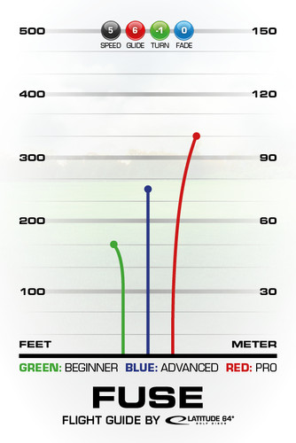 The Fuse is a stable mid-range disc designed by Latitude 64 and Jesper Lundmark. This disc has been designed with enough stability to hold curves while providing minial low speed fade. The result is Latitude's best mid-range and a disc that is great for players of all abilities. Latitude's Recycled Line plastic provides outstanding grip with an awesome deep lacquer look, and is more environmentally-friendly in its use of reground plastic from Latitude's in-house production. Features: Stability Rating: +0.5 Latitude's signature Recycled Line Plastic