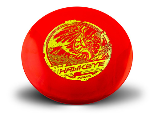 The Hawkeye is Innova's newest glidey fairway driver. Fans of Discmania's S-Line FD will love the familiar flight and feel of the Hawkeye. "This is a disc for staying on the fairway," says Innova co-founder and disc developer, Dave Dunipace. Innova adds, "At faster speeds, it flies straight with exceptional glide. For players with less power, it has a consistent, mellow fade. All of this adds up to accuracy... the hallmark of the Hawkeye."