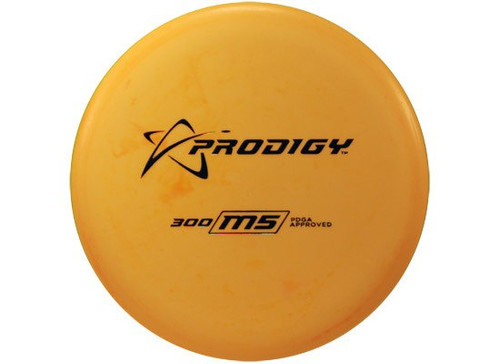 The M5 is an understable control midrange. When thrown hard it will flip up and turn over. It is a perfect beginner midrange and is also a great utility midrange in the hands of experienced players. The 300 Series plastic is an outstanding professional blend that provides superior grip and a firm feel. This plastic will stick to chains and eventually yield a straighter flight is it ages. Features: Striaght to understable midrange Prodigy 300 Series Plastic