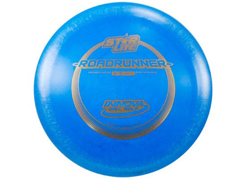 Innova's Roadrunner an excellent understable distance driver and is an ideal first Distance Driver. It's made to fly straighter for beginners, while more experienced players will find it useful for turnover drives and rollers. This disc just feels great in the hand. High glide and low fade will maximize distance and accuracy. STARlite uses a similar approach as Blizzard plastic, adding tiny bubbles within the disc to lighten it and make it more friendly to lower-powered players. The STARlite Roadrunner is a limited release, and the first STARlite model offered! Features: STARlite plastic for extra light weight Speed: 9 Glide: 5 Turn: -4 Fade: 1