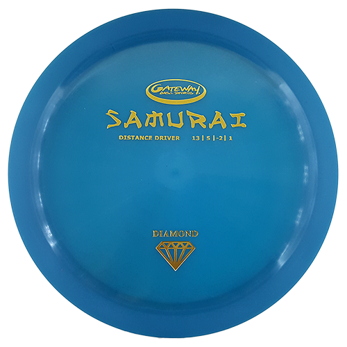 The Samurai is a really fast long-range driver that is easy to control. Its sleek, low profile and slight dome will produce extremely long flights while the bead on the wing adds to the control needed when thrown very hard. This disc has just the right amount of stability to be very useful for new players and pros. It's also a good headwind disc for those with 300ft. of distance and long turnover driver for those with more power.