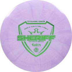 There's a new Sheriff in town! The Sheriff boasts long, controllable lines with a slight turn and predictable fade. Great for anyone that wants to have a longer utility disc with great control. The Sheriff is sure to lay down the law on the course! Fuzion is a premium-quality material with a legendary aesthetic look.
