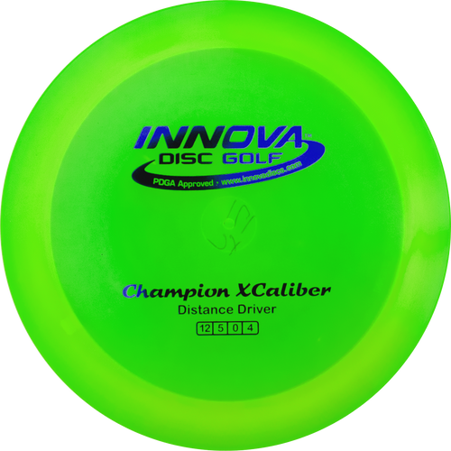 The Champion XCaliber is a super fast very overstable power disc golf driver for hard-throwing players looking for maximum distance. The Xcaliber is so fast, that it is only the second disc to earn a speed rating of 12. The Xcaliber is described as being a cross between a Destroyer and a Max, making it a great choice for players with exceptional arm speed, strong forehands, or for players throwing into a strong headwind. This awesome driver became a general release in August 2009 after years in Innova's CFR fund-raising program. Excellent! Features: Innova CFR Series Champion Plastic Speed: 12 Glide: 5 High Speed Turn: 0 Low Speed Turn: +4 Available only in weights from 173-175g